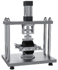 • A máquina possui dois cabeçotes curvos, entre os quais é posicionado o corpo de prova, que ali é submetido a forças triaxiais.