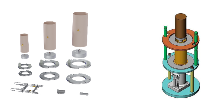 Gabaritos e acessórios para realização dos ensaios com Membranas, top cap’s e dispositivos para montagem LVDT’s + Extrator de amostras: