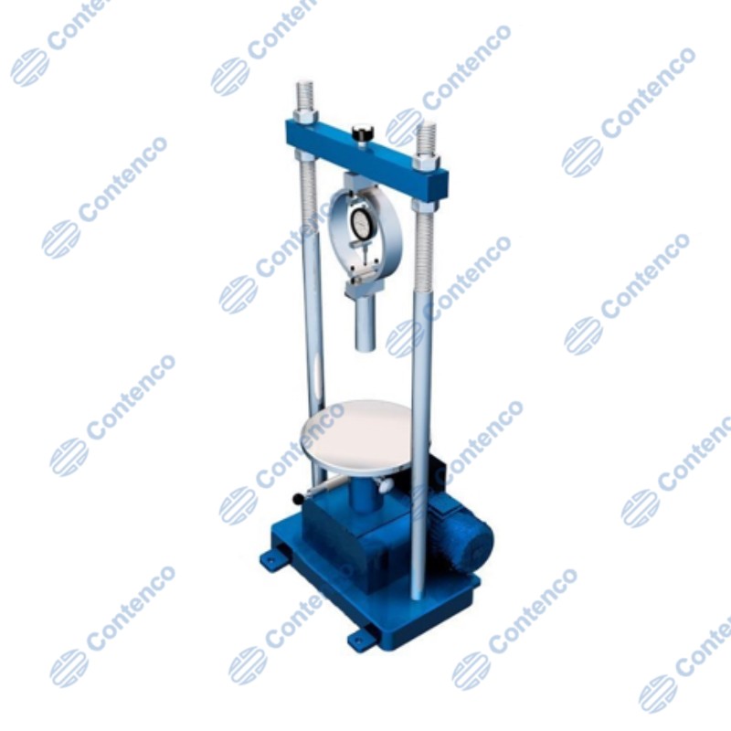 Prensa Marshall utilizada para realização do ensaio da determinação da fluência e estabilidade de misturas Betuminosas de Cimento Asfáltico ou alcatrão, a quente, para uso em pavimentação. Prensa Marshall elétrica, com anel dinamométrico (já aferido), com capacidade para até 5000Kgf, com extensômetro, com resolução de 0,001mm para medir as deformações do anel dinamométrico na compressão das amostras.O motor elétrico permite uniformidade na velocidade de penetração do pistão, conforme prescrito na norma do ensaio. O motor deve ser instalado em uma superfície separada a da prensa. Este procedimento visa minimizar perturbações ao ensaio pelo efeito das vibrações provocadas pelo motor. O pino-trava situado logo abaixo do prato possibilita o retorno rápido do pistão, na fase preparatória do ensaio. |