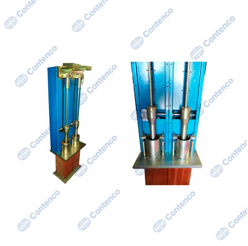 Soquete para compactação Marshall duplo elétrico, acompanhado de pedestal e painel de controle. O processo da compactação é automático e de produção em duplo. Colocam-se dois moldes não compactados, se programa o número de golpes, o equipamento realiza a compactação automaticamente até o fim da programação.